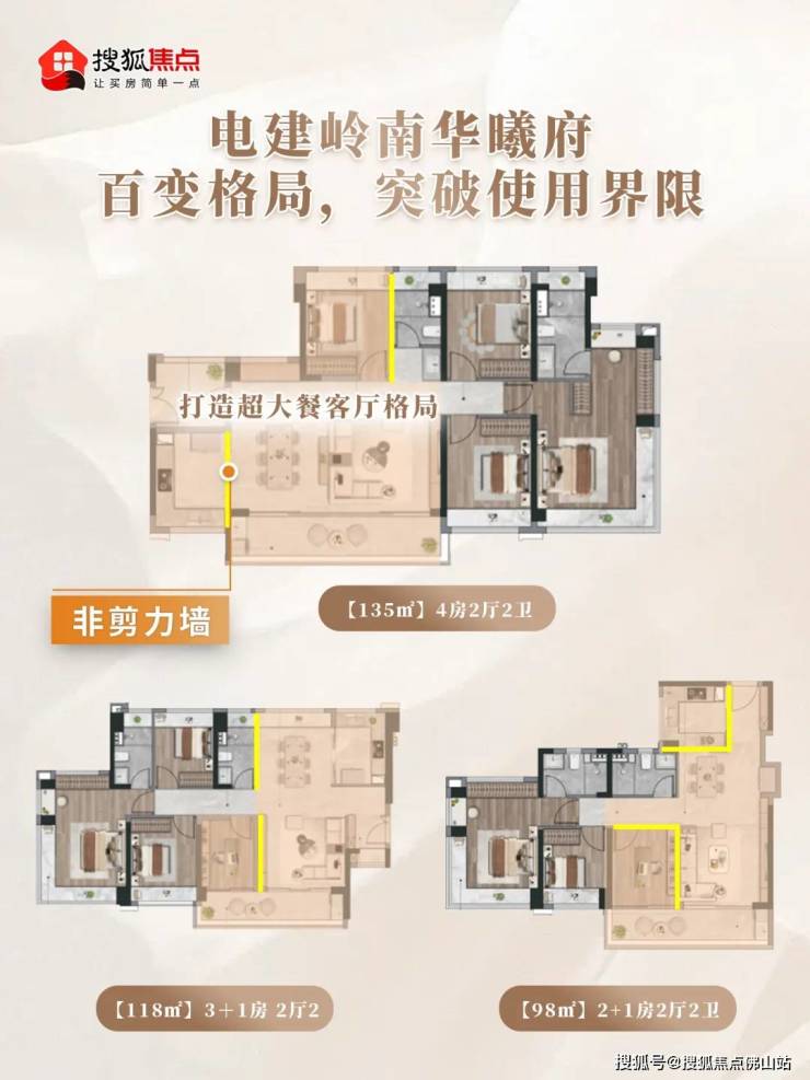 电建岭南华曦府主打刚需、刚改居住需求,面积涵盖建面约98-135㎡户型,更重要的是,相比市面上大部分户型,项目的产品力已经进入next level。