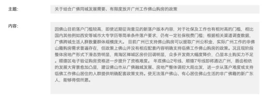 日前,小狐在佛山人民政府网站发现此前关于佛山落户门槛过高的问题有了回复。