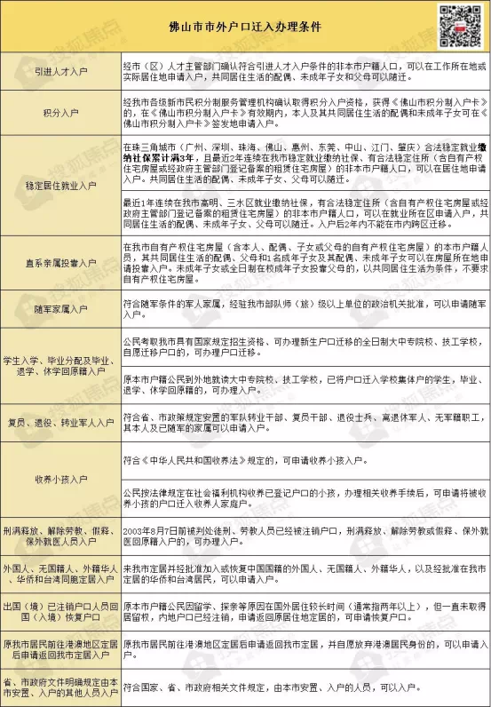 除此之外,佛山市调整户口迁移政策、户口登记以及迁入条件也作出新的改变。