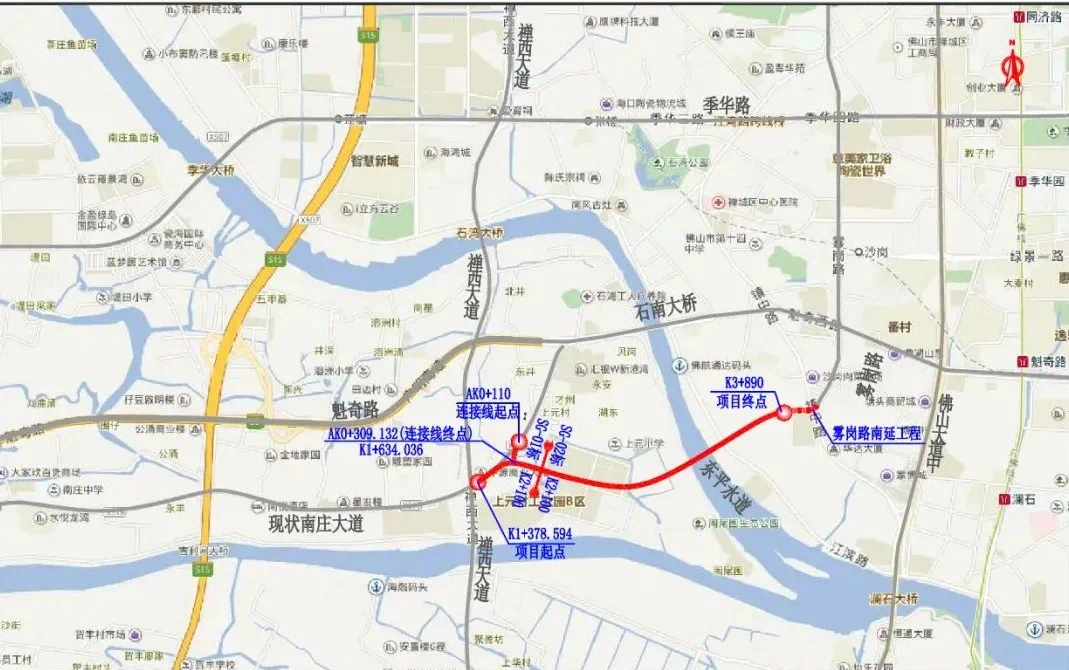 起点:南庄镇禅西大道与南庄大道平交口东侧。