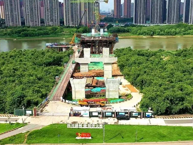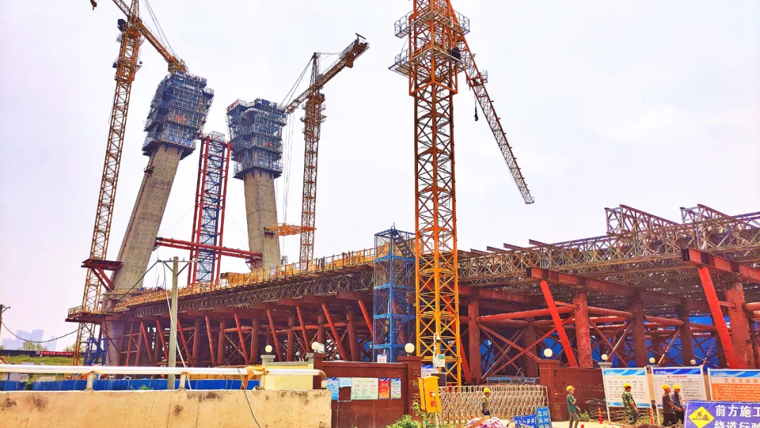 值此金九银十之际,同济大桥主桥主塔完成第6节段和下横梁施工顺利完成,正式进入中塔柱施工阶段,总高度121m的主塔累计完成22%,引桥排名前列联排名前列段钢箱梁架设作业、第三联现浇梁支架搭设作业也顺利完成,主桥、引桥建设全面开花,各个施工节点紧张有序、全面运转,项目建设热火朝天。