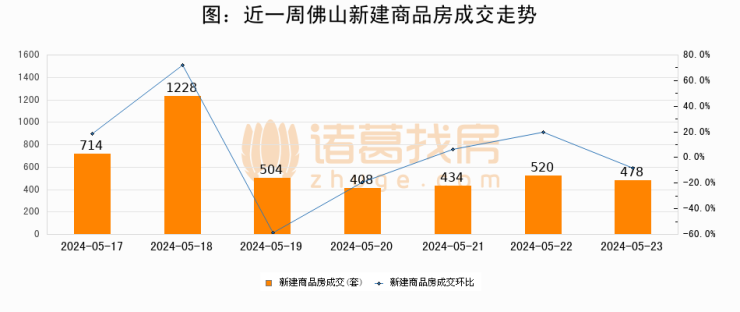 【佛山成交日报】05月23日新房成交478套、二手房618套;涨价房源50套