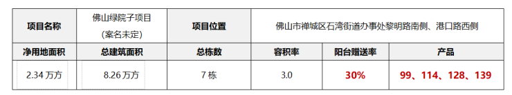 今年9月3日,南通亚伦联合体以47700万元夺得禅城区石湾绿院子地块,折合楼面价约8000元/㎡。