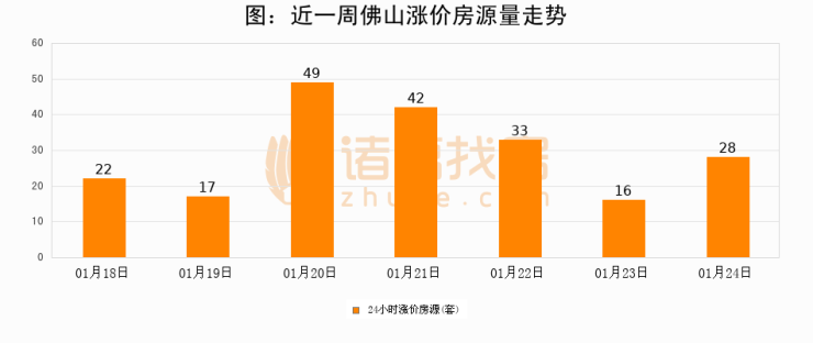 根据诸葛找房数据显示,佛山24小时涨价房源量为28套,较01月23日增加12套,环比上涨75%。与此同时,涨价房源占比小幅扩大,业主信心有所提升。