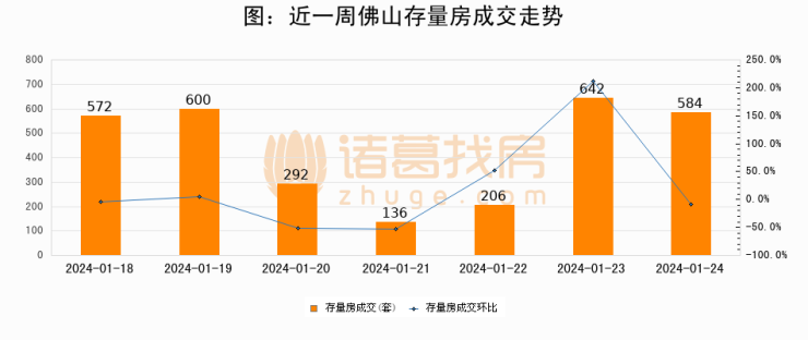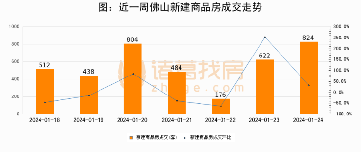 【佛山成交日报】01月24日新房成交824套、二手房584套;涨价房源28套
