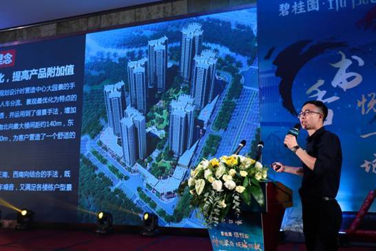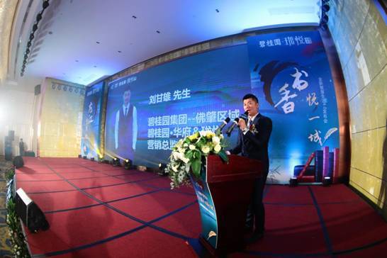 接下来是由碧桂园佛肇区域营销总监刘甘雄先生上台进行解说,为在场嘉宾讲述了碧桂园品牌和服务,着重分享了碧桂园·珑悦项目的核心优势。