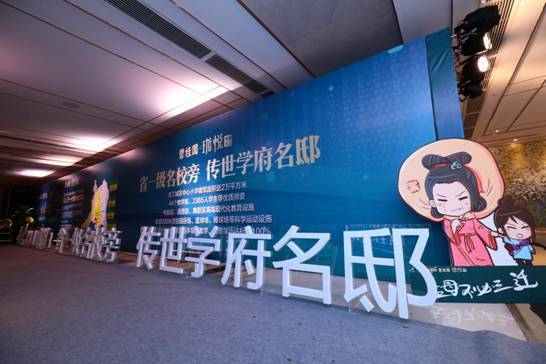 产品发布会开始前,早已精心布置好的会场让人眼前一亮!在过道两旁设置了集团品牌发展的回顾、碧桂园·珑悦的项目介绍以及对教育痛点的卡通版唯美演绎,加上嘉宾提名册的摆放,让整个发布会非常具备仪式感和尊贵感。