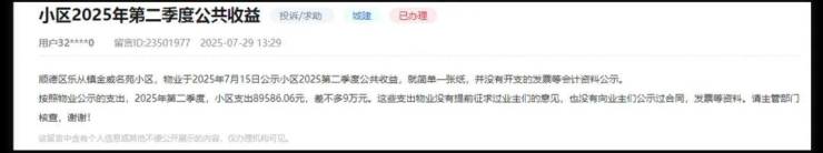 再有乐从金威名苑的业主,质疑物业公共收益公示过于简单,且近9万元支出去向不明确。