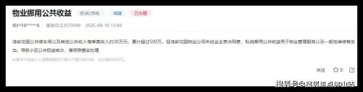 位于三水北江新区的鸿安花园,网友指小区物业长期挪用公共收益近500万,且收益都是处于不透明状态。