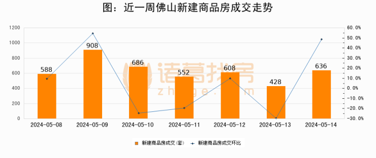 【佛山成交日报】05月14日新房成交636套、二手房538套;涨价房源47套