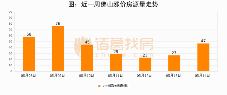 根据诸葛找房数据显示,佛山24小时涨价房源量为47套,较05月13日增加20套,环比上涨74.1%。与此同时,涨价房源占比小幅扩大,业主信心有所提升。