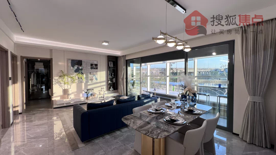 采用横厅设计,餐客厨一体,且充分利用了过道的面积,动线清晰;6.3米开间的阳台,采光充足,饱览东平河一线美景。
