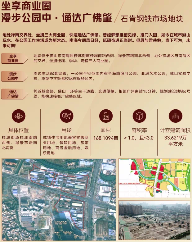 本次土地推介会旨在抓住佛山中心城区扩容机遇,进一步推动“七湖两湾一站一园”重点区域优质居住用地出让工作,为高标准高质量建设城市新空间,打造与先进制造业核心区相匹配的高品质城市环境提供载体与动能,全面打造现代化活力新南海。