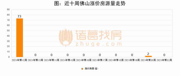 从调价房源来看,第51周佛山涨价房源0套,较上周下降100%。与此同时,51周涨价房源占比回落8.7个百分点,业主信心小幅波动,购房者可则需入市。