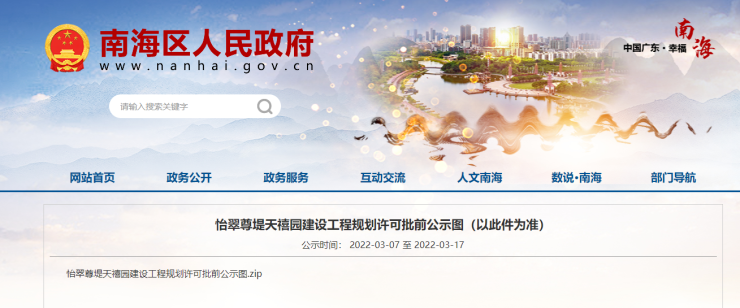 近日,从佛山市自然资源局南海分局处获悉,建面超百万方大盘——怡翠尊堤最后一块住宅用地正式申请报建,宗地规划建19栋高层建筑,合计住宅992户。