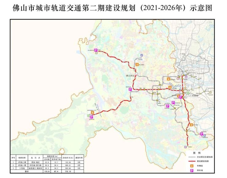 (佛山市城市轨道交通第二期建设规划(2021-2026年)示意图)