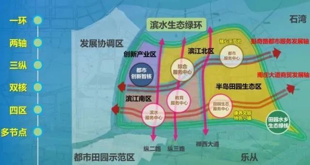 凤翔湾都市产业区打造“一环两轴三纵、双核四区、多节点”的空间格局(图片来源:南庄镇)