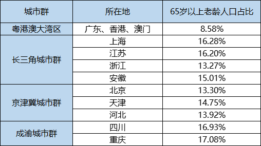 湾区的人口优势,不止在于增量先进。它还是中国最年轻的城市群。数据显示,2019年广东65岁以上人口占比9%。在31个省市区当中,广东老龄化程度排倒数第六。相比国内其他核心城市群,都已经不同程度陷入老龄化的困扰。