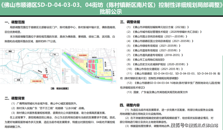 近日,顺德人民政府发布关于《佛山市顺德区SD-D-04-03-03、04街坊(陈村镇新区南片区)控制性详细规划局部调整》的批前公示。
