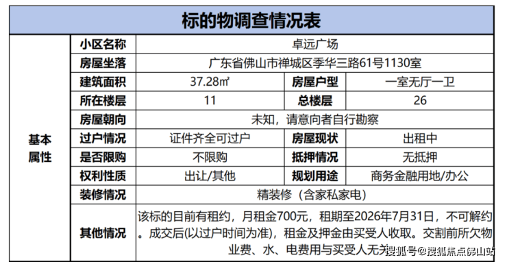 位于桂城的金色领域广场,一套27㎡公寓,同样是带租约拍卖。
