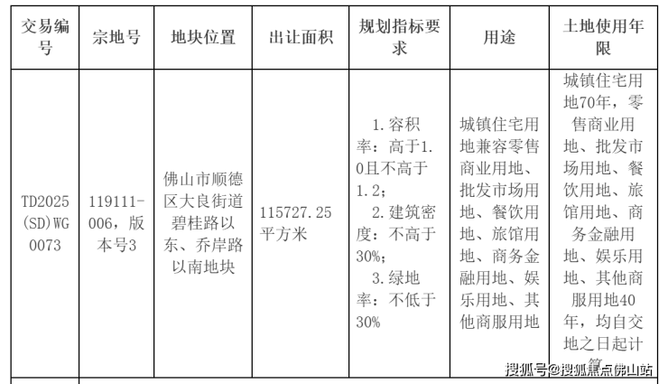 出让文件显示,宗地容积率不高于1.2,绿地率不低于30%,建筑密度不高于30%,建筑限高80米,为二类居住用地,整宗地块须于2年内动工,4年内竣工。