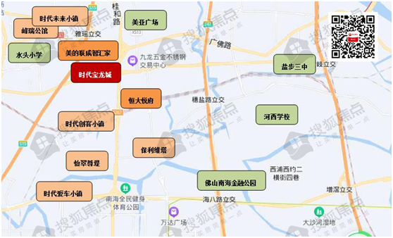 楼盘方面,地块周边在售新房有怡翠尊堤、时代天韵、时代未来小镇、招商金地时代天璞等,在售均价约在2.2-3万/㎡之间。