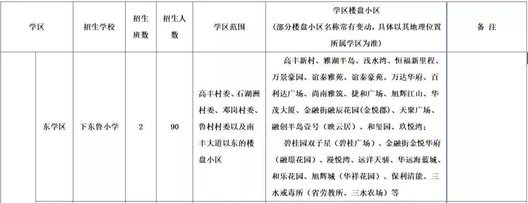 ↓↓↓秋季学期公办小学一年级招生计划西南街道