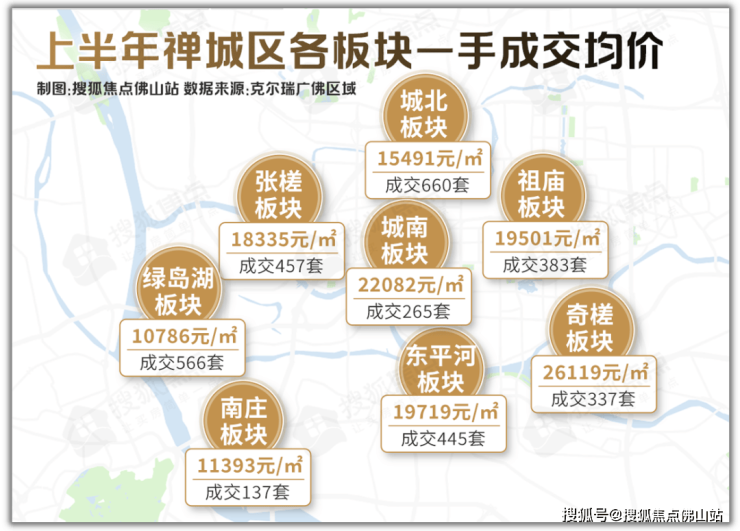 禅城区方面,上半年成交均价最高的是奇槎,约26119元/㎡。