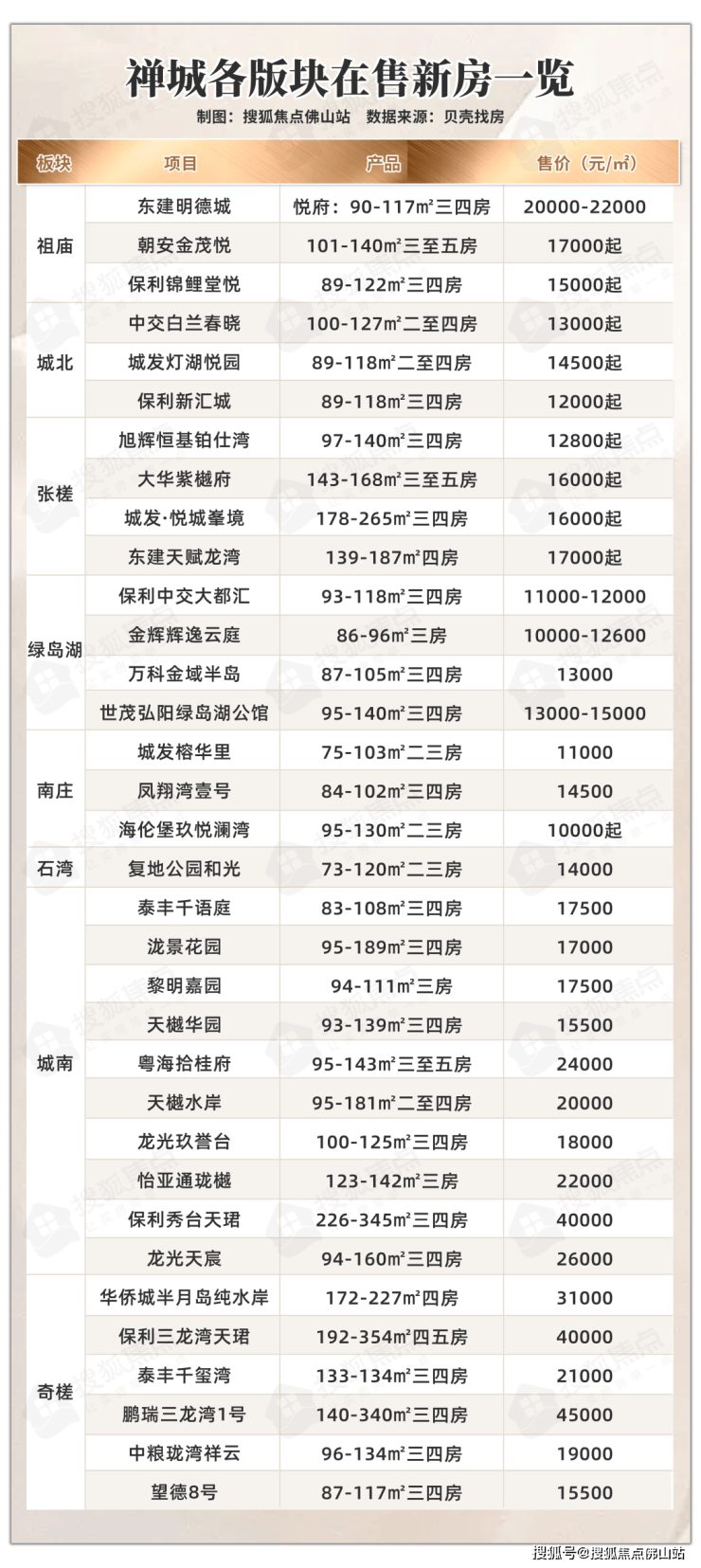 目前禅城区至少有34个新盘在售,其中城南是供应量最多的板块,在售新盘高达10个。