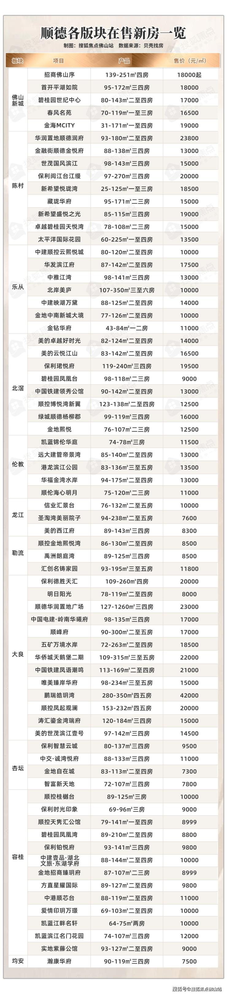 此外,顺德的在售新盘为全市最多,数量达71个,主要分布在大良、容桂、陈村板块。