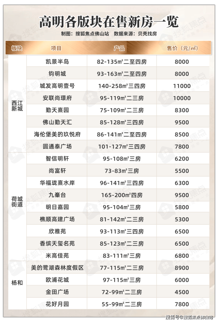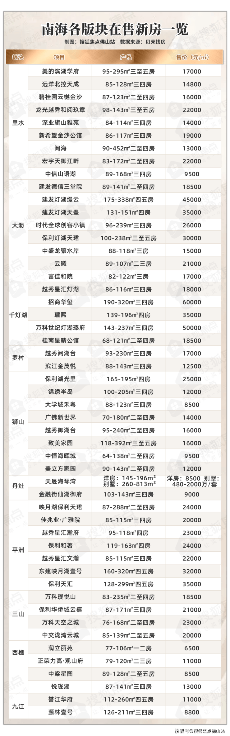 与此同时,平洲、三山两个板块的均价也高达2万/㎡,而狮山东区、西樵、九江等板块,均价低于1万/㎡,对预算较低的买家更友好。