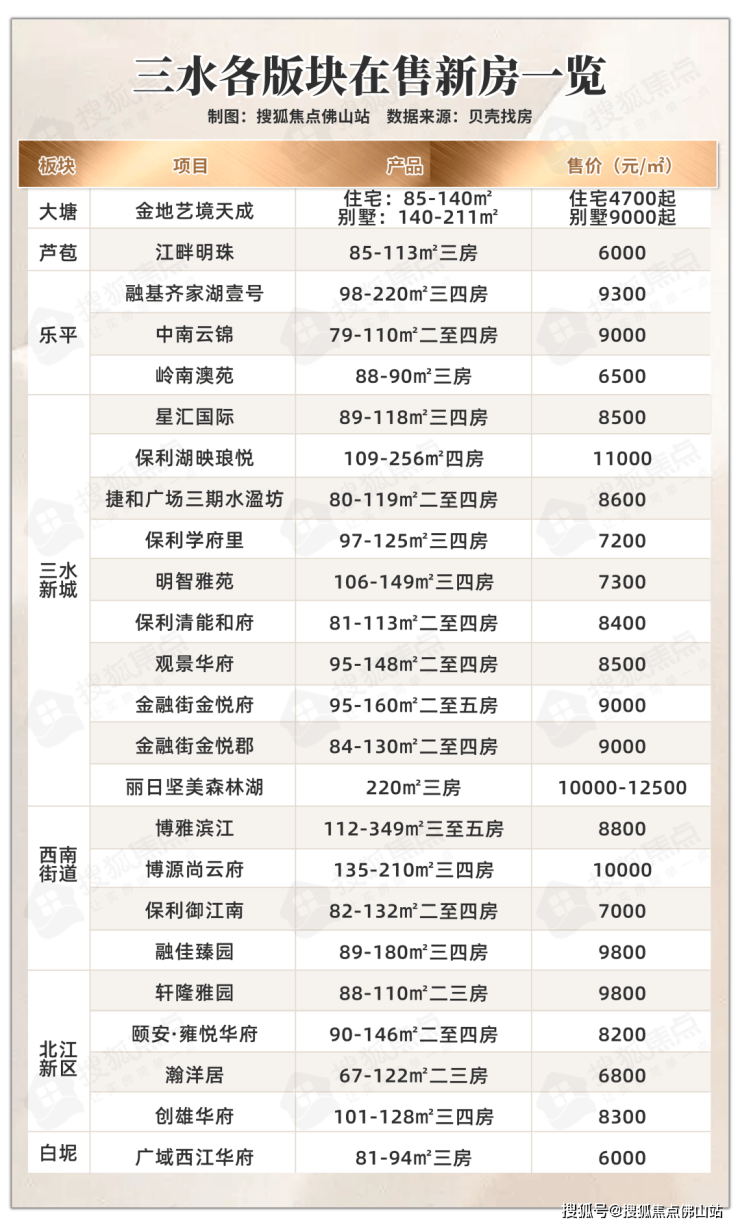从新房供应量来看,全区有23个新盘,其中三水新城就占了10个。