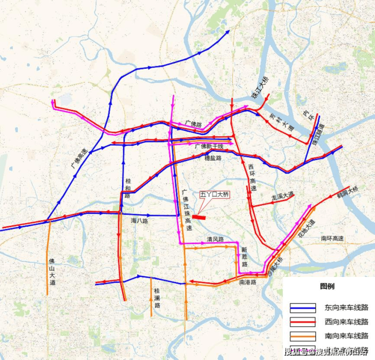 五丫口大桥是广佛交通中重要的道路通道,位于佛山市南海区与广州市荔湾区交界处,西起于海八东路,跨越佛山水道,东终于龙溪大道。