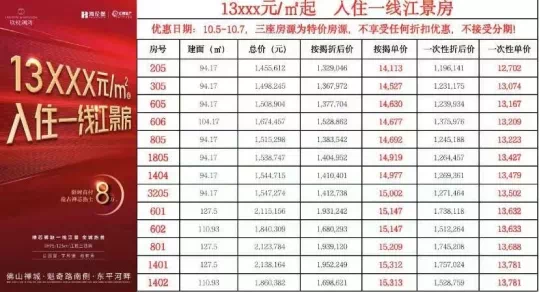 比如海伦堡玖悦澜湾,项目刚开始吹风价是1.8万/㎡,但国庆期间,项目推出一口价特价单位,一次性付款单价较低1.3万/㎡起,售价直降5千/㎡。