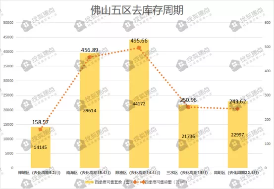 五区当中仅禅城区处于供求平衡状态,其余四区去化周期超12个月,属于供过于求。