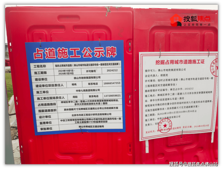 5月24日,佛山四号线一期智慧新城站点进行围蔽施工,围蔽时间从2025年5月24日至2026年1月31日。