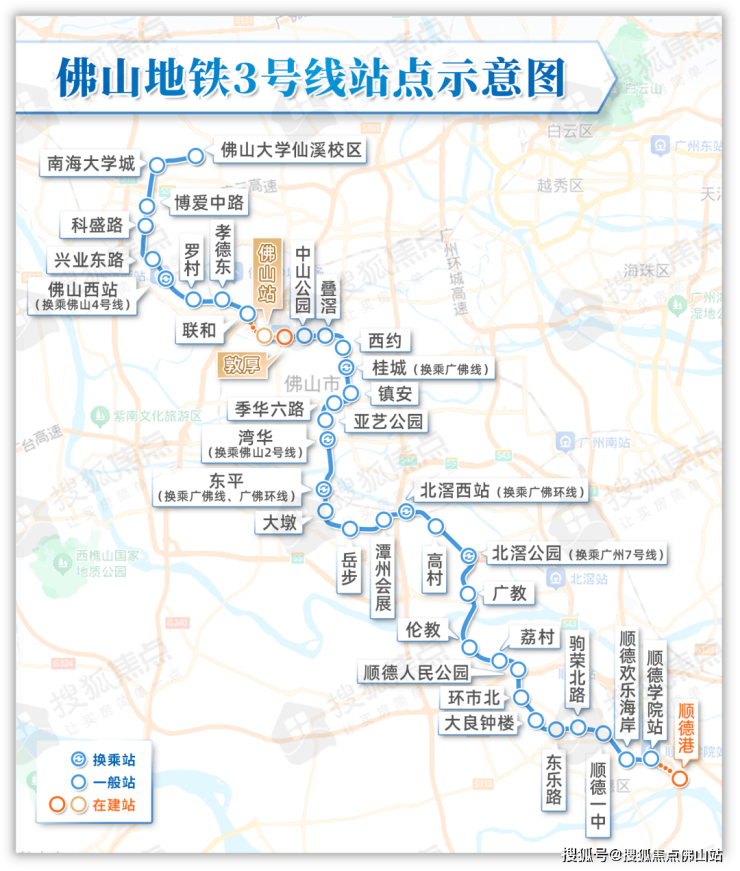 早前官方输出佛山地铁3号线中段(中山公园——联和)将于2025年中贯通,此次通车的有敦厚站。