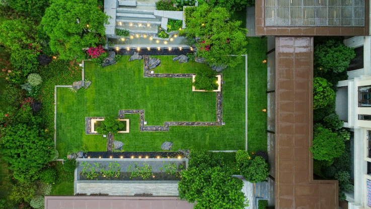 星光台、星光大草坪、生态岛、珑香花田、水上会客厅、龙小湖乐园……纷繁多样的景观生态、别致设施,如诗词俳句,意蕴穿插、重视层次和生态,很难让人联想到,这竟然是社区业主们楼下园林的一部分。