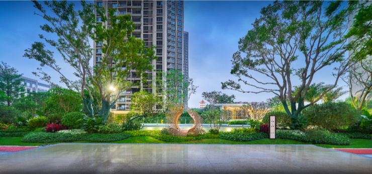 看到建筑在风景里自然生长,便如同置身百年小榄文脉中。园区入口的朱雀旺门,与小区中央水景、银海枣大道相呼应,花影、树影、云影、水影、风声、雨声、鸟语......无形之景,有形之景,交响成曲。