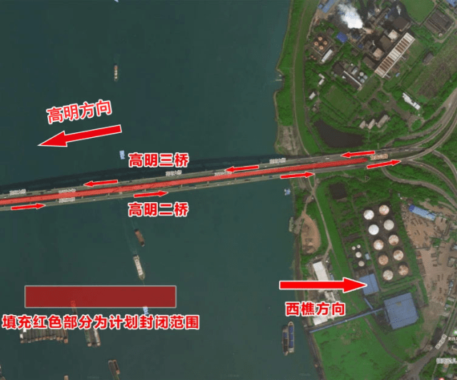 23日下午起,高明大桥旧桥双向车道全封闭作业