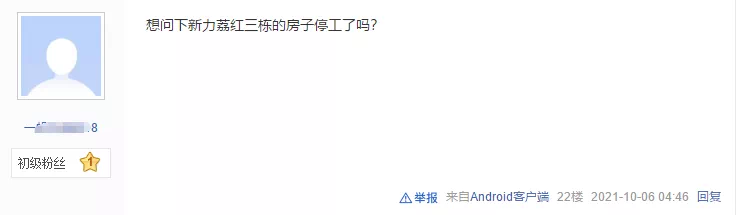 一中介人士透露:“现在基本没有同行在推这个盘,快凉了。”另一个位于花都的小体量项目——新力荔红花园,也有网友发帖咨询施工进度,可见背后入手了的业主,也是悬着一颗担惊受怕的心。