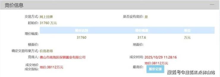 保利华南于10月以超3.81亿拿下的该项目地块,折合楼面价约5232元/㎡。