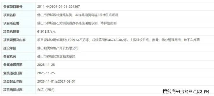建设单位为佛山和茂房地产开发有限公司,项目总投资61918.5万。