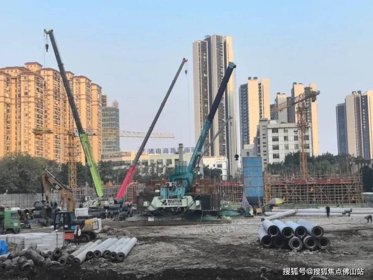 目前,工地已经在热火朝天地建设中,挖掘机、塔吊、起重机等已进场。