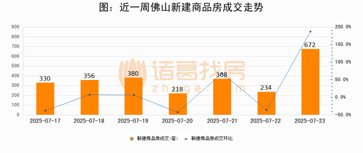 【佛山成交日报】07月23日新房成交672套、二手房552套;