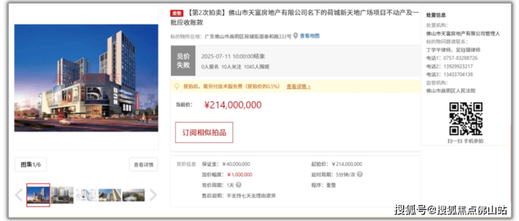 7月10日,佛山市天富房地产有限公司名下的荷城新天地广场项目不动产及一批应收账款,二度上架法拍平台。