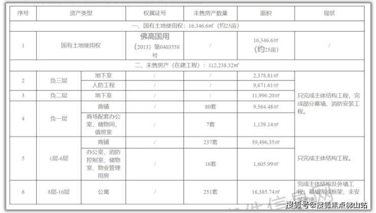 值得注意的是,该债权资产包中就有佛山高明荷城新天地广场商业物业在建工程及公寓。
