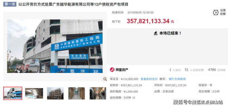 此外,广东越华能源有限公司等12户债权资产包项目曾于2019年登上法拍平台,最终被竞买人以3.57亿拍下。