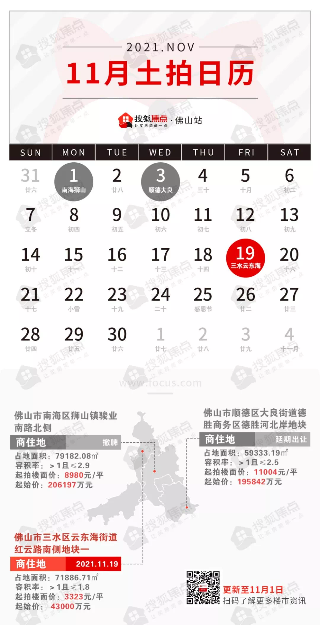 其中,11月土拍开局不利,首推的狮山商住地已经撤牌,而原定于11月3日出让的顺德大良德胜河北岸地块,也发出通告表示:出让金付款期限调整,并延期至12月10日出让。
