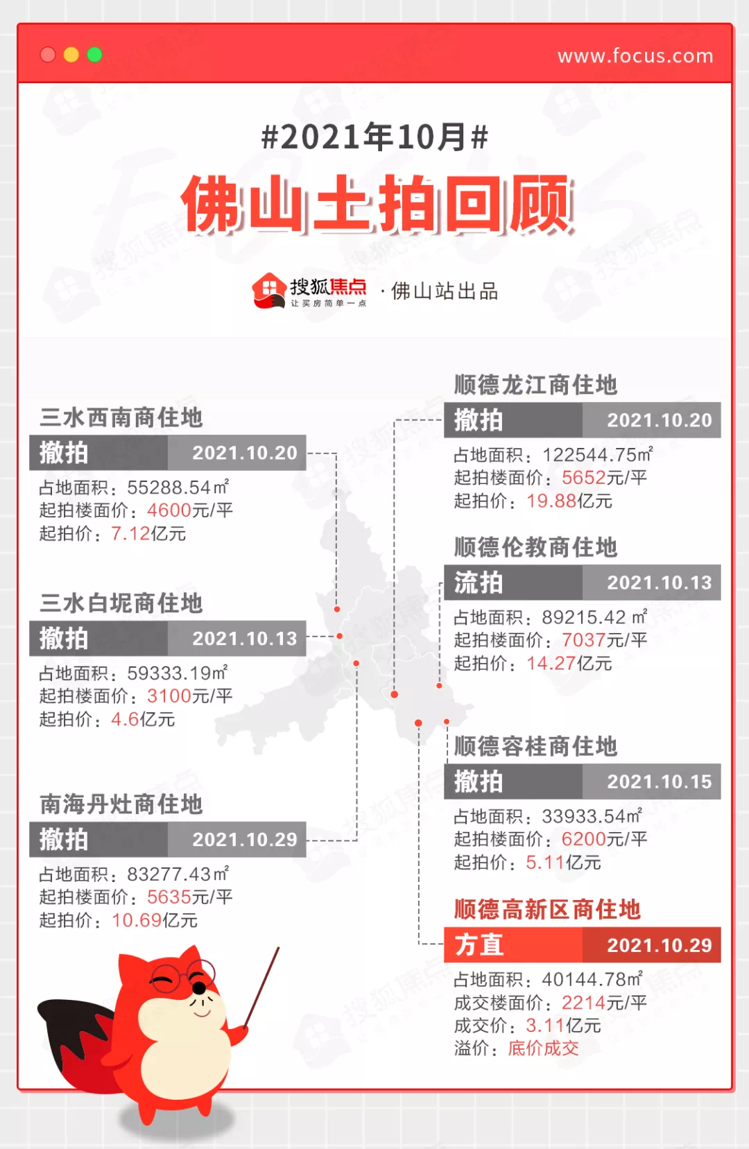 据佛山搜狐焦点统计,10月原计划出让的7宗地块:5宗撤牌、1宗流拍,少有成功出让的顺德高新区地块,也只是底价成交。